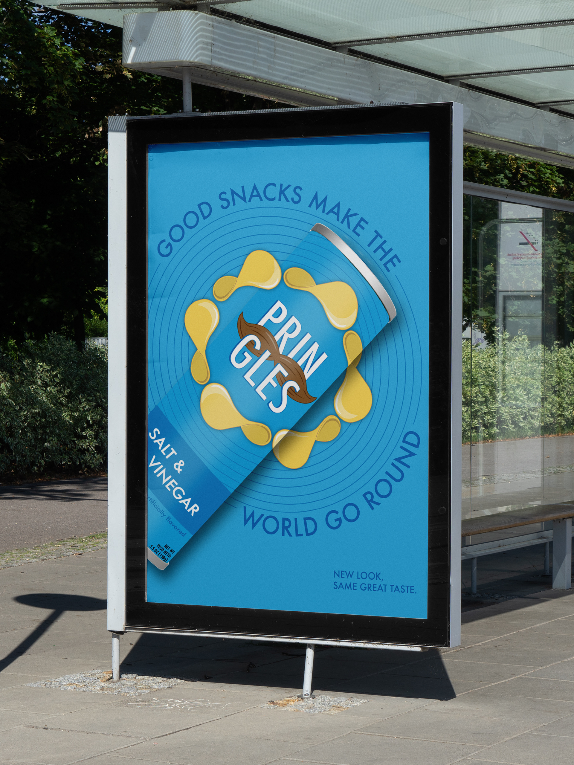 In my Advertising Design & Production class we were tasked with completely redesigning a food brand’s packaging and launching the new look through an ad campaign. These are mockups of different versions of the ads I produced for Pringles which feature a more refined and updated logo and emphasizes the unique and iconic round packaging.
